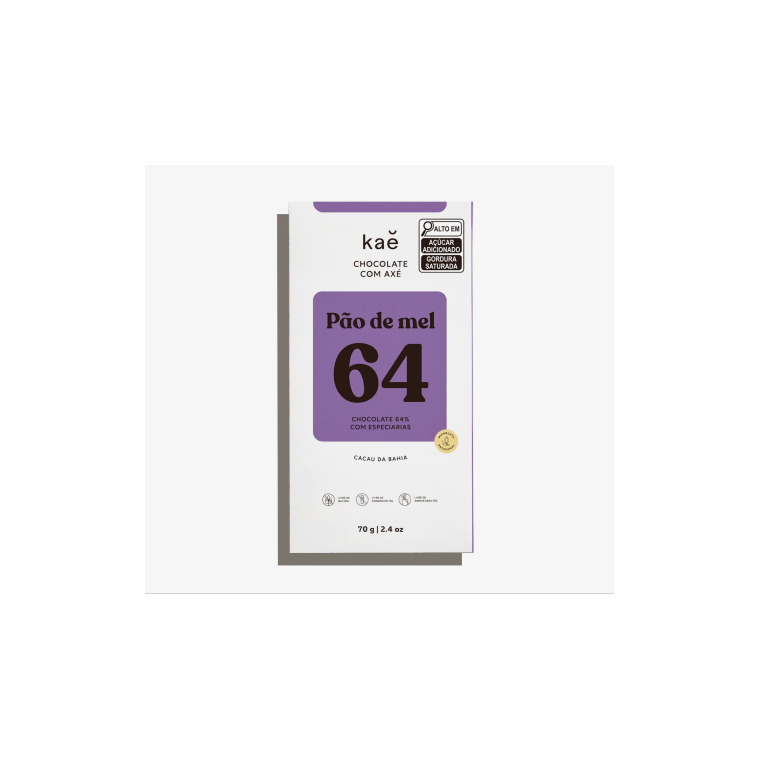 Chocolate de Pão de Mel é feito com nosso chocolate 64%, cacau de altíssima qualidade, manteiga de cacau e açúcar demerara orgânico. Nada mais. Sem conservantes nem aromatizantes artificiais, mas com muito axé e borogodó!